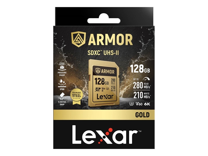 Card Lexar SDXC UHS-II 128GB V60 in confezione doppia. Lettura fino a 280MB/s e scrittura fino a 210MB/s per video 4K e raffiche veloci.